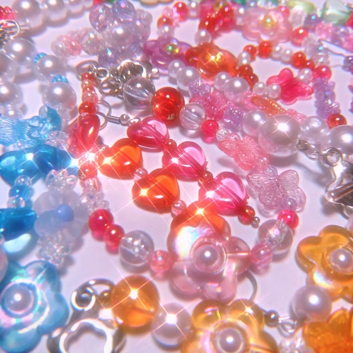 ビーズ/キラキラ/女児/Y2K/平成/小学生/かわいい/カワイイ/可愛い/kawaii/オタ活/推し事/参戦グッズ/原宿系/ビーズアクセサリー/個性派/個性的/ファッション/派手/奇抜/パール/y2k/キャンスパ/WC/エックスガール/韓国/
