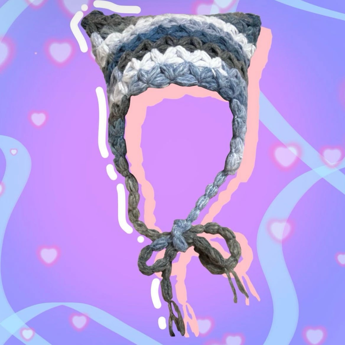 猫耳ニット帽 y2k ファッション ブルー 青系